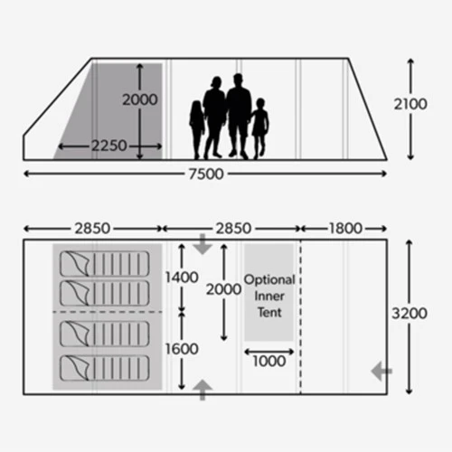 • Optional 2 berth Inner Tent toggles into living area to increase tent berth size