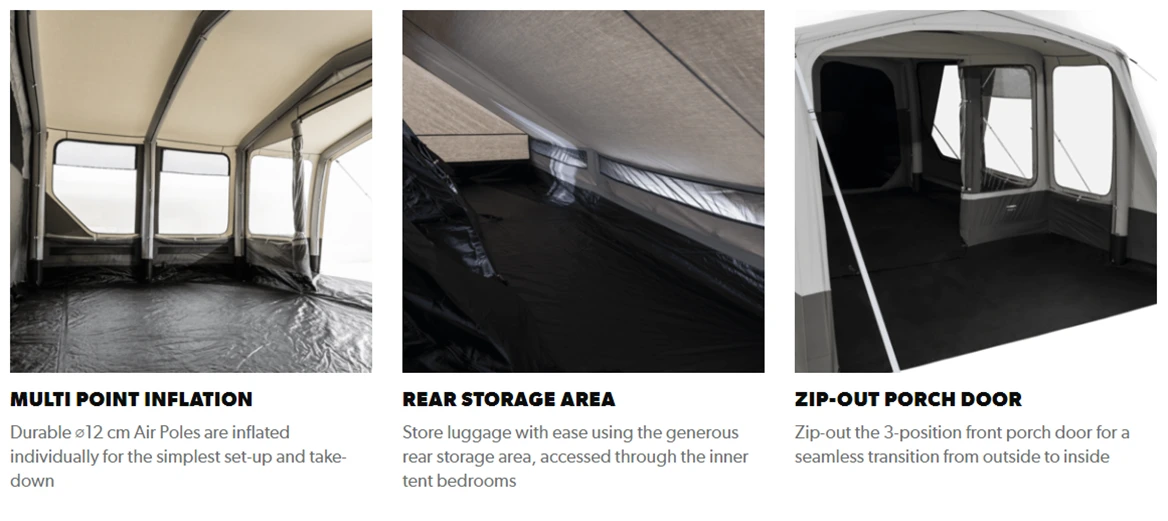 The Dometic Ascension FTX 401 is a luxury four berth inflatable tent designed with space, comfort and ease of use in mind.