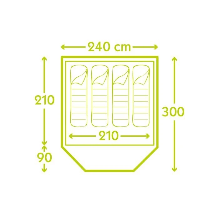 • Groundsheet: PE 10 x 10 130 g/m² 10,000 mm HH